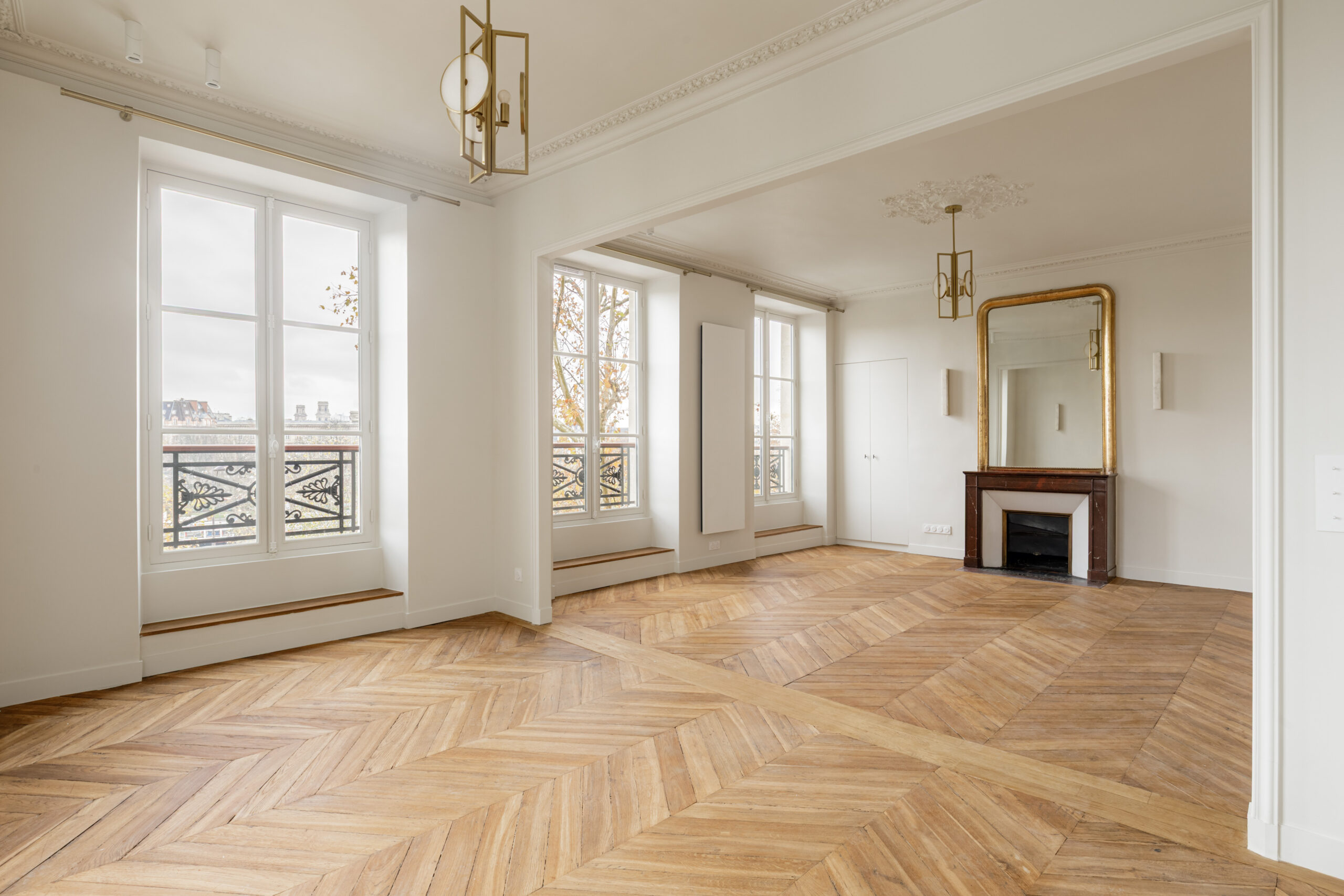 A deux pas du Cheval-Blanc, en bord de Seine, un magnifique appartement de 155m carres avec des vues uniques et sensationnelles sur les monuments les plus emblématiques de la Rive Gauche. Situé au 3ème étage d’un immeuble récemment réhabilité aux parties communes de standing, cet appartement d’angle sans vis à vis exposé plein Sud et Est compte :