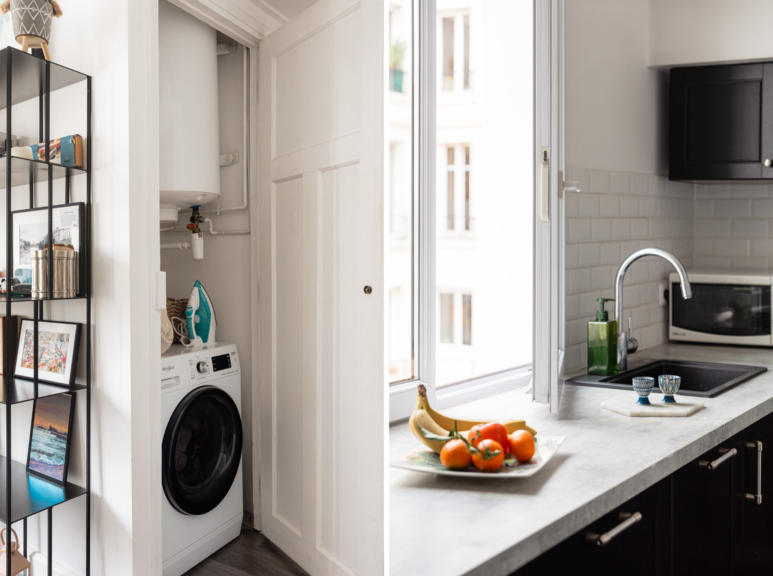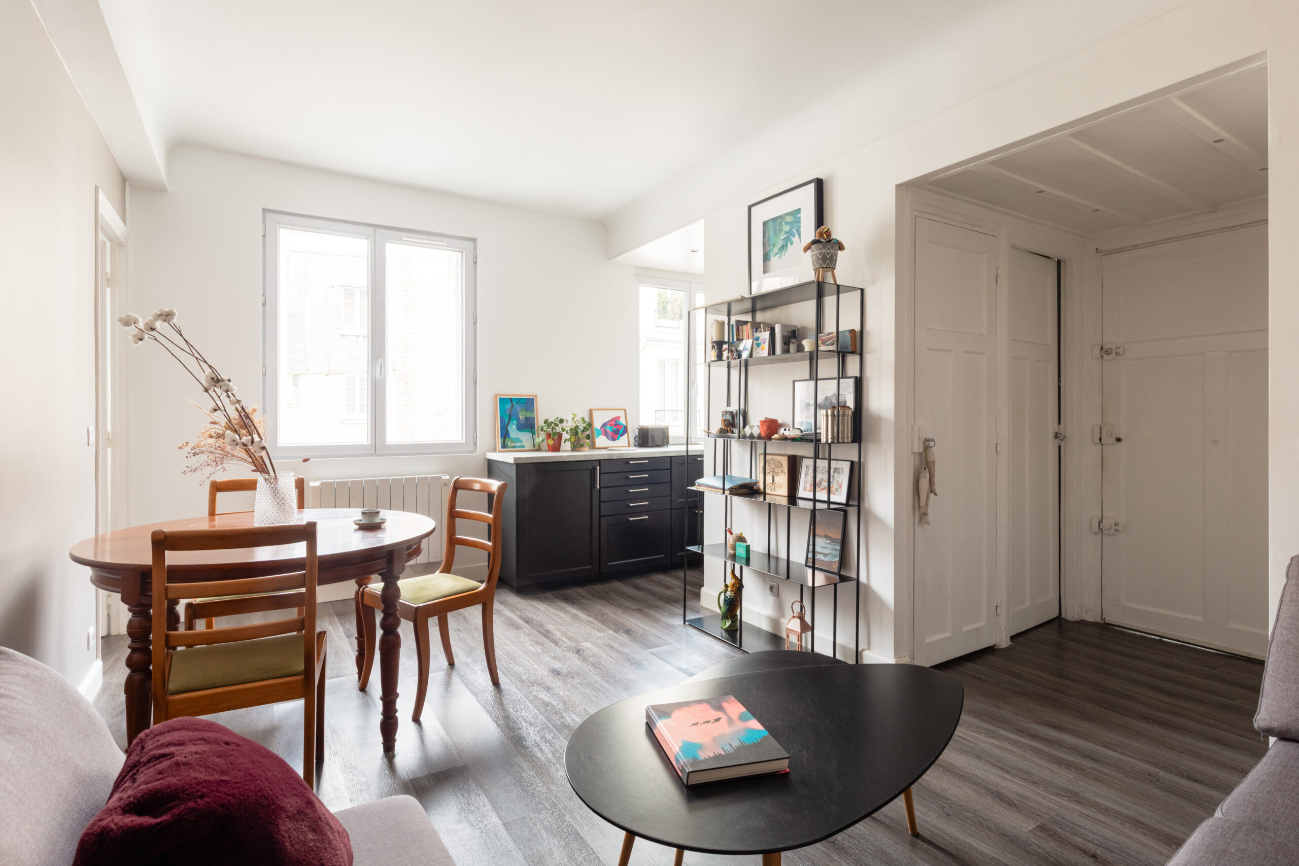 Au coeur du Haut-Marais, à deux pas des commerces, dans un bel immeuble ancien et calme de la rue Béranger, au 5ème étage sans ascenseur, un appartement prêt à vivre de 39 m2 exposé à l’ouest sans vis à vis avec aperçu sur des monuments iconiques de la capitale dont la Tour Eiffel et le Centre Pompidou, donnant sur une grande cour pavée, comprenant :